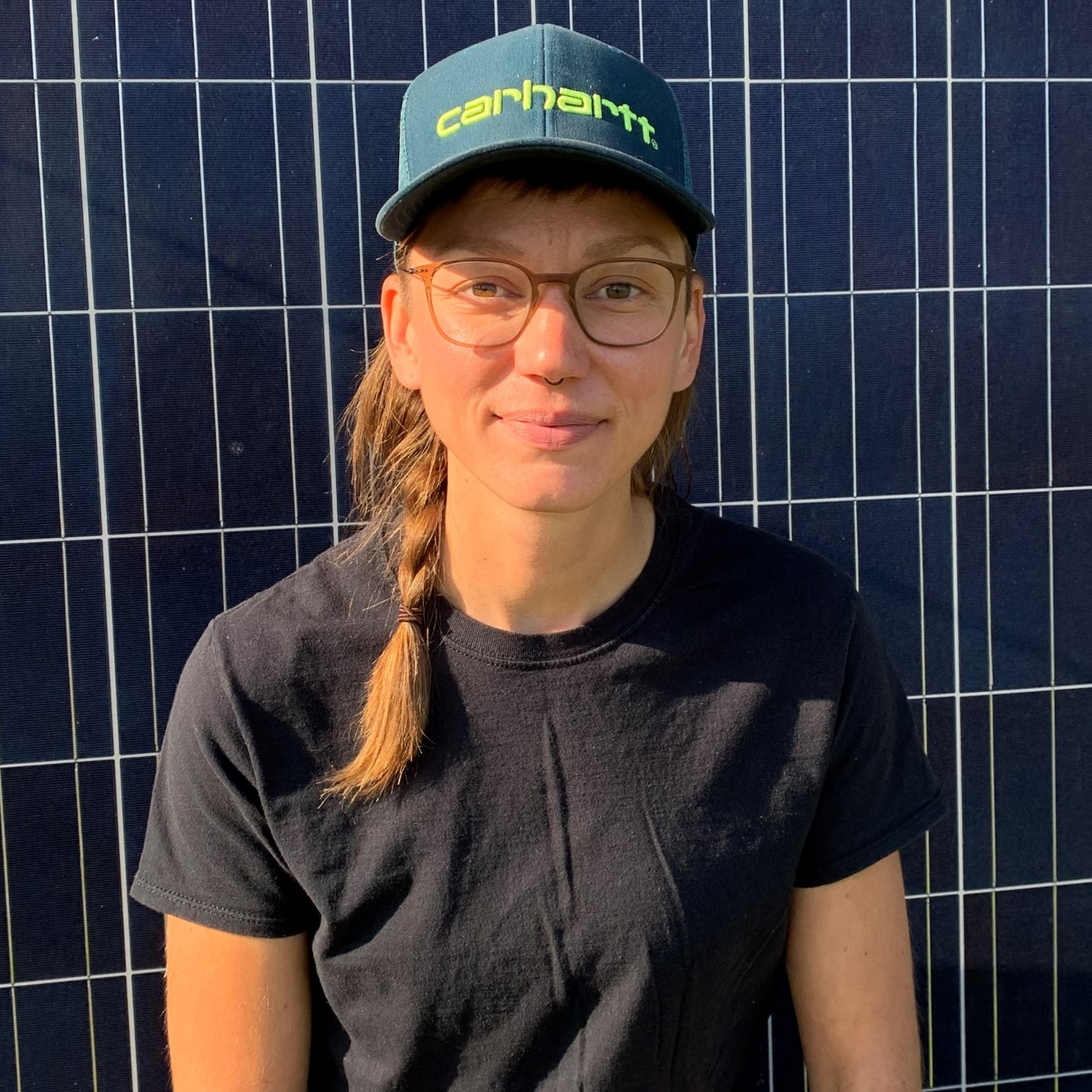 Jenny is a Journeyman Electrician and Residential Foreman with Arch Solar in Plymouth, WI. She completed a four-year apprenticeship program and also obtained her NABCEP PVIP. She entered the trades after a long career in sustainable agriculture and natural foods. She needed to make a professional shift after becoming a single mom, and the idea of renewable energy seemed like a natural next step in the realm of sustainability.